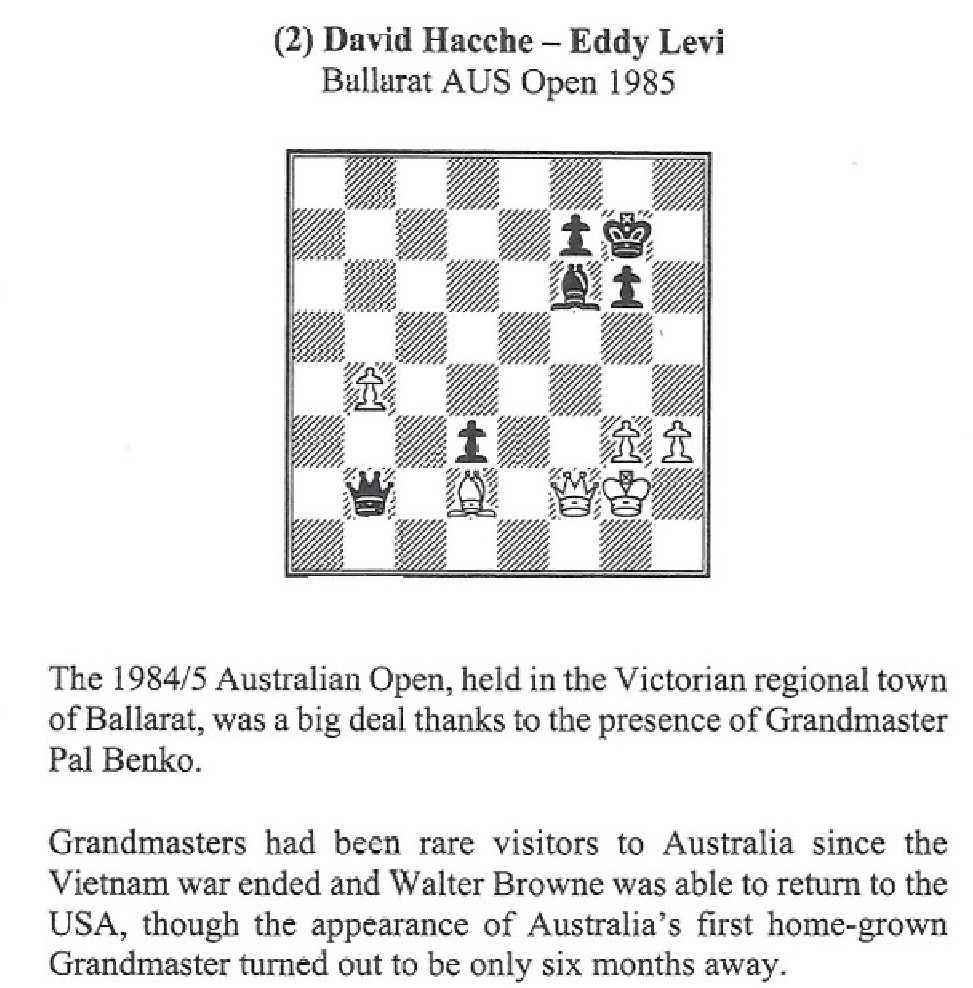 White resigned after 60...Bd4 - should he have? Check out this 1985 game held in Ballarat at the Australian Open, between David Hacche and Eddy Levi...Click the link for solution.