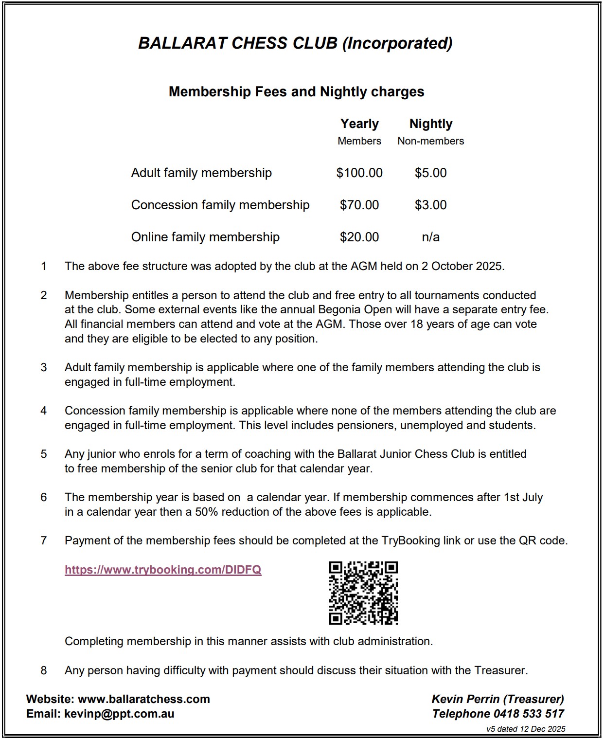 We are happy for Ballarat residents and other associate members to join our Chess.com online tournaments. A nominal fee of $20.00 is payable to register as a club member. This will be transferrable towards a regular membership. Please use Trybooking to join (use the Donation field to enter $20 and then fill in the ticketing information.)