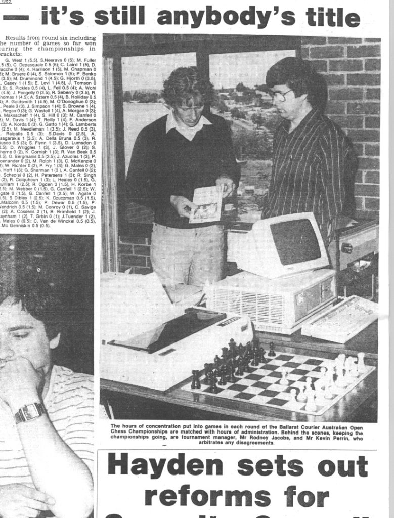 Here is a blistering Round 3 game between West and Hacche where White sacs a knight then offers a queen, with his bishop rook knight and pawn sufficient to complete the job, if the queen sac was taken.
