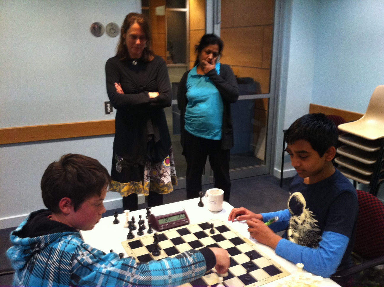 The Reserves Championship proved to be more of a nail-biter than the A grade!Reserves Champion Jonathon Yates lost only one game in the tournament to Thumula Gamage. Interested parents Anna and Vineetha watch on!