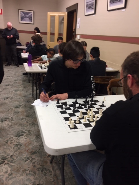 Tournament leader, Simon Rutherford, caught up and won his game against Ruari Coffey on the weekend - still undefeated and a point and a half ahead of the nearest contender. The biggest upset for this round was between twelfth seed, Sean Macak, and second seed, Bas van Riel; Sean held Bas to a hard fought draw. Ben Naughton steered clear of any nonsense and defeated fourth seed Harrison, who had employed a characteristic dodgy opening defence. Kevin took down Rob L in a blazing Kings Gambit Accepted - no prisoners were taken in his swashbuckling attack. Cassandra was able, through careful play in a Nimzo Indian, to earn a draw from Patrick, who, when faced with a cramped position with only a Bishop and Knight off the board, decided he had had enough chess after 15 moves. Hossam, suffering from neck pain, fought well to overcome Tom in a fairly even game, utilising his better pawn structure to take the point in the endgame. In the Reserves, Michael Schreenan defeated top seed Leonard Goodison to reach equal first position with Dan Wang, who had 1/2 point bye. Chantelle found a way to activate her pieces in a forest of pawns, defeating her dad, Jasan, in an adjourned game. Gus Tatman managed to draw against Ian Boyle, as did Kanishk against Gustav.