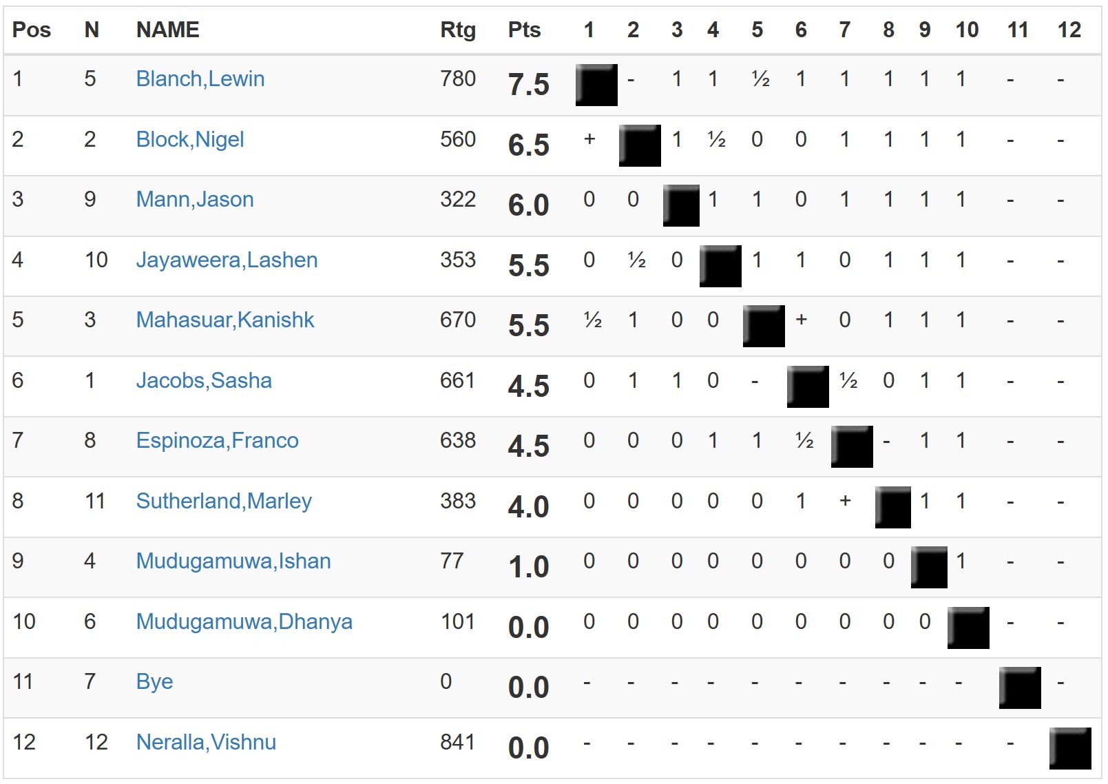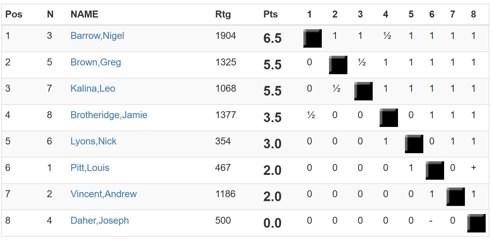 The inaugural Associates Championship has ended with Nigel Barrow seizing the title on 6.5/7, followed by Leo Kalina on 5.5/7 and Greg Brown on 4.5/7. Congratulations to Nigel.