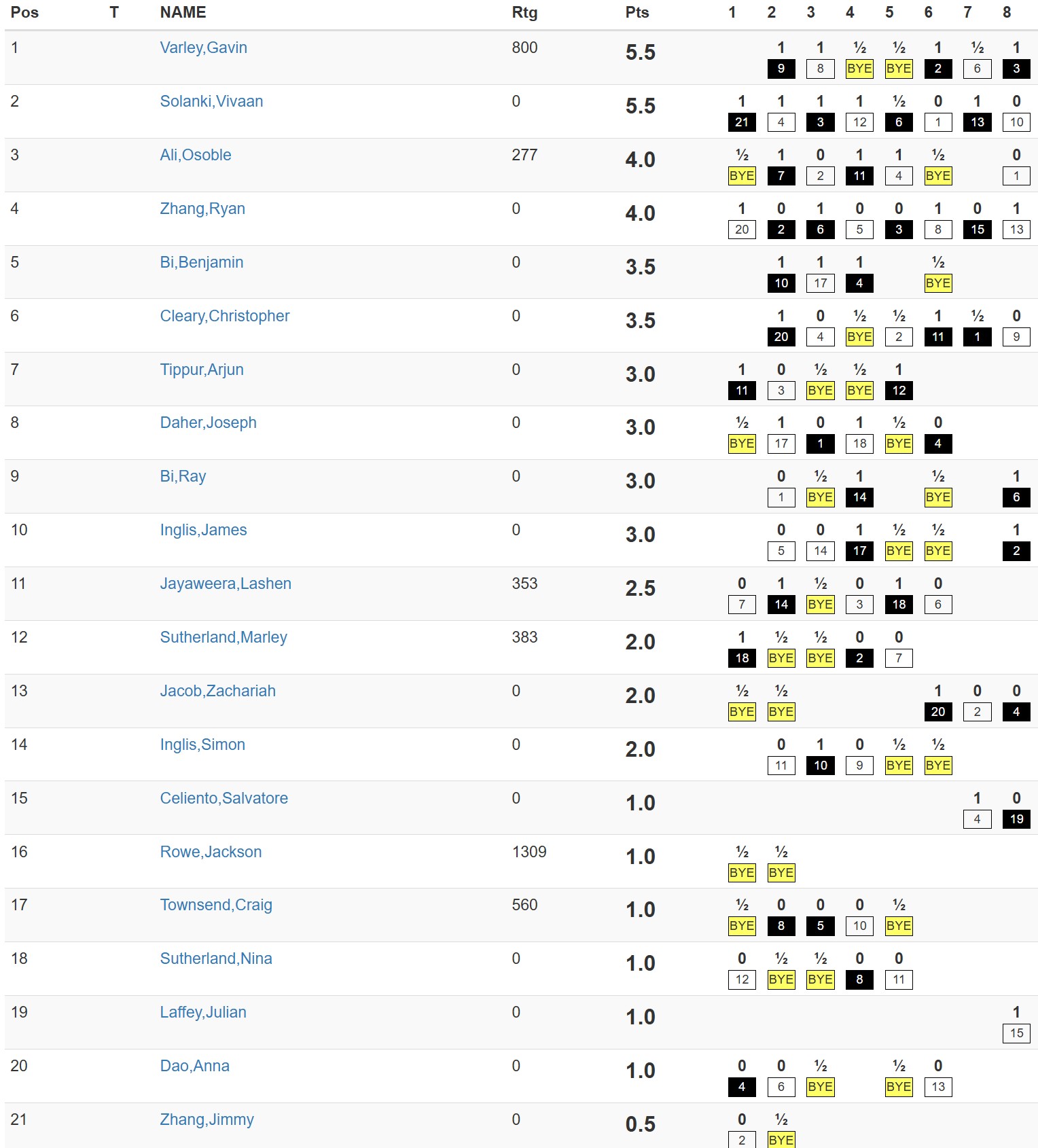 Meanwhile, the postponed Round 6 game Bas van Riel versus Harrison Harrison was played during the week. Bas won a one-sided game as Harrison left his game face at home.