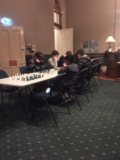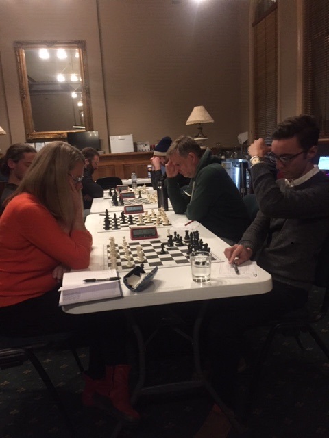 In the Reserves, Anna Yates maintains her lead after a fighting draw against Tom Oppenheim, while Thomas Parker bounced back with a win over Nigel Block. Anna leads with 3 ½ /4. Thomas Parker, Nick Lyons, and Andrew Vincent are the chasing pack with 3.