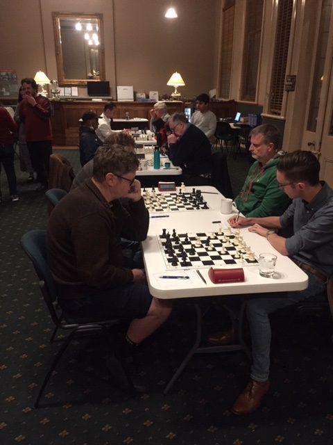 Jules Feinberg met Harrison Harrison, and once past Harrison's opening weirdness, a conventional position was reached. The players were soon into a drawn rooks and pawns ending, but Harrison showed his strength as he exploited some minor errors by Jules to win a fine game.