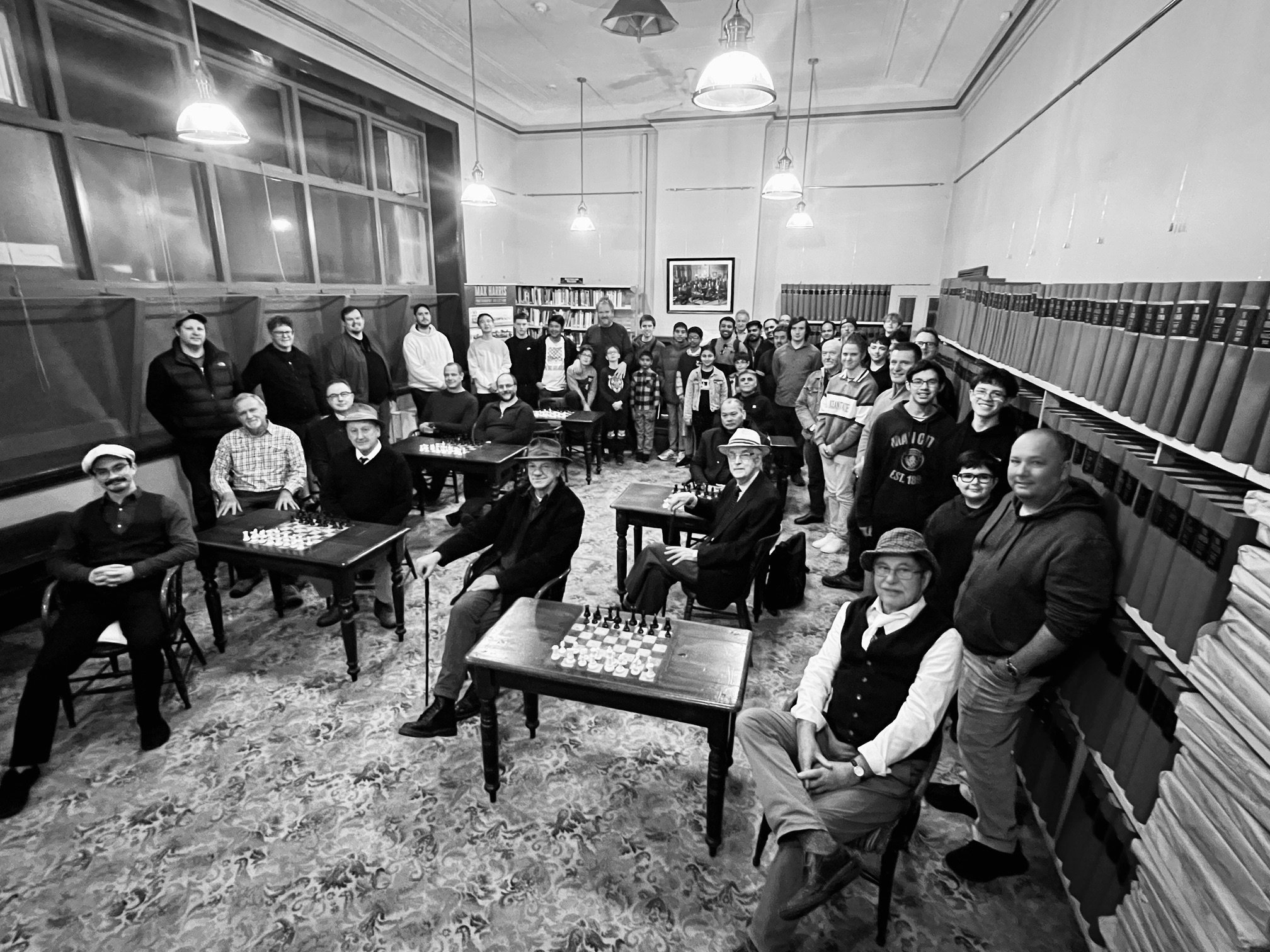 The BMI was also keenly aware of the historic occasion, and the Hooper Room, site of that first match, was made available for speeches and photos, with the original chess tables and chairs in place.
